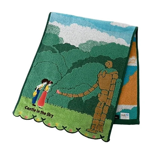 Ein stiller Wächter mit einem grünen Herzen – dieses liebevoll gestaltete Handtuch zeigt den berühmten Gärtner-Roboter aus Das Schloss im Himmel inmitten friedlicher Natur. Ideal für Badezimmer, Küche oder unterwegs – praktisch und voller Ghibli-Poesie.