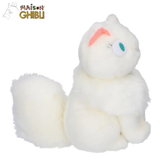 Elegant, ruhig und einfach bezaubernd – Lily, Jiji's weiße Katzenfreundin aus Kiki’s Lieferservice, kommt als mittelgroße Plüschfigur zu dir nach Hause. Mit ihrer aufrechten Haltung und dem sanften Blick bringt sie einen Hauch Anmut und Ghibli-Charme in jeden Raum.