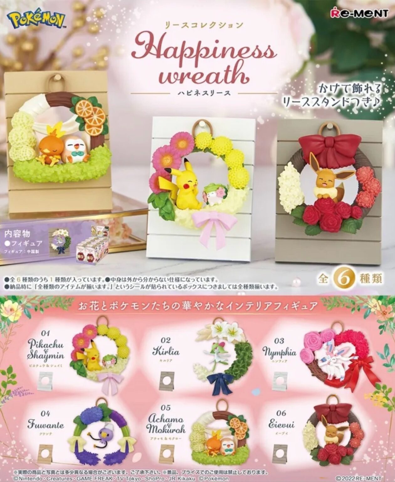 Ein Kranz voller Freude! Mit dem „Happiness Wreath“-Figuren feierst du die niedlichsten Pokémon in fröhlichen, floralen Arrangements. Jede Figur ist kunstvoll in einen kleinen Kranz eingebettet – perfekt als Dekoration oder zum Verschenken.