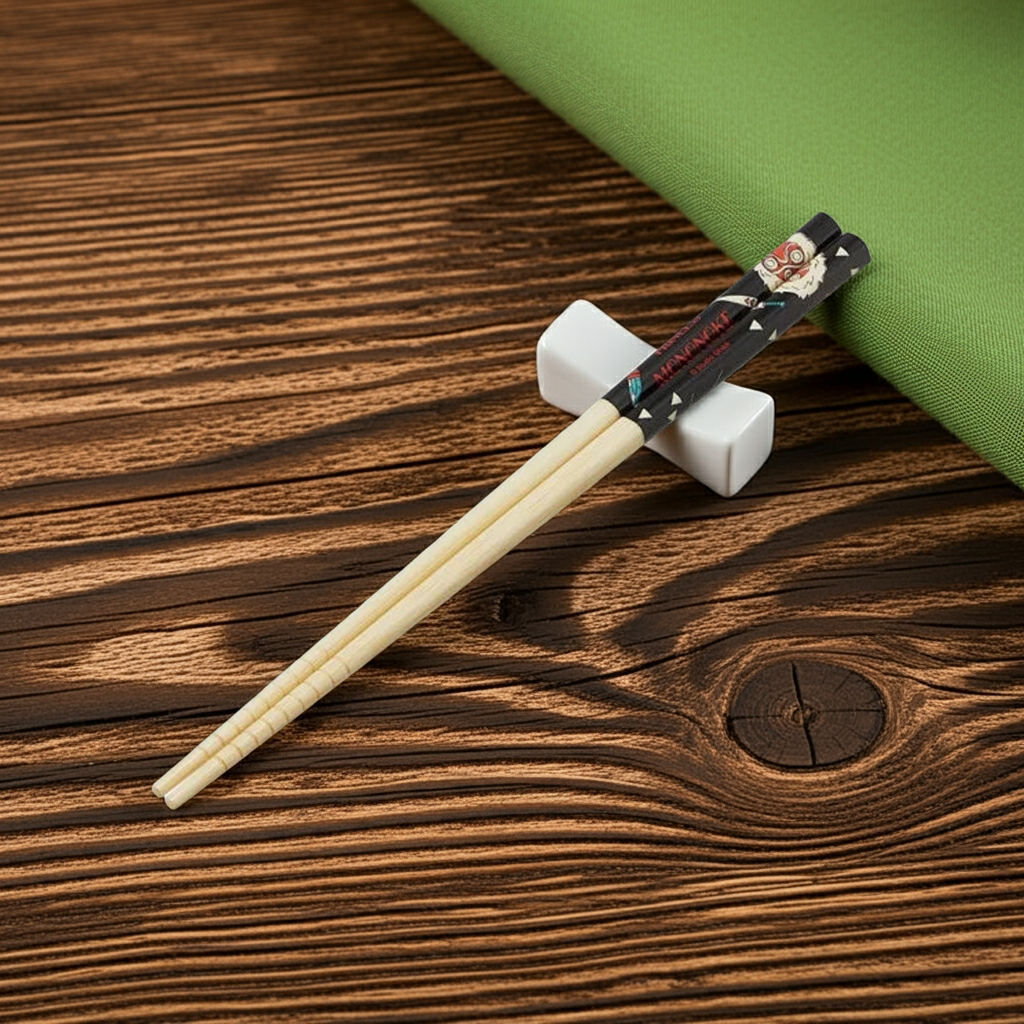 Kraftvoll, geheimnisvoll und naturverbunden – diese Essstäbchen zeigen San's ikonische Maske aus Prinzessin Mononoke und bringen die wilde Schönheit des Waldes auf deinen Tisch. Ideal für alle, die die starke Symbolik und Atmosphäre des Films lieben.