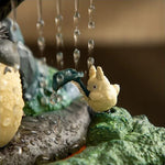 Tauche ein in die verträumte Welt von Studio Ghibli mit unserem Bonsai-Springbrunnen-Diorama von Mein Nachbar Totoro! Dieses entzückende Kunstwerk zeigt die berühmte regnerische Szene an der Bushaltestelle mit Mei, dem großen grauen Totoro, dem kleinen weißen Totoro sowie einem Rußmännchen versteckt in einem majestätischen Baum.