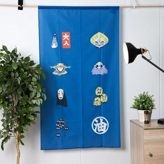 Mystisches Design: In tiefem Blau gehalten und verziert mit feinen Mustern und Symbolen aus Chihiro's Welt – wie den Rußmännchen, Boh, Yubaba oder traditionellen Elementen – wirkt dieser Vorhang ruhig, elegant und zugleich voller Fantasie.